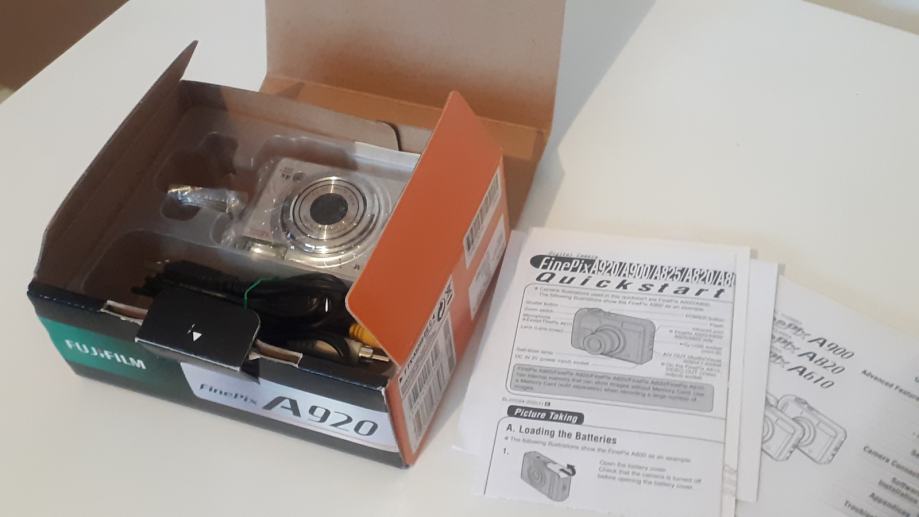 Prodajem nekorišteni fotoaparat Fujifilm FinePix A 920, 9 megapixela, 4 x optički zoom, radi na AA baterije, xd kartica 1 GB. Stanje 10/10, što je vidljivo i na slikama.