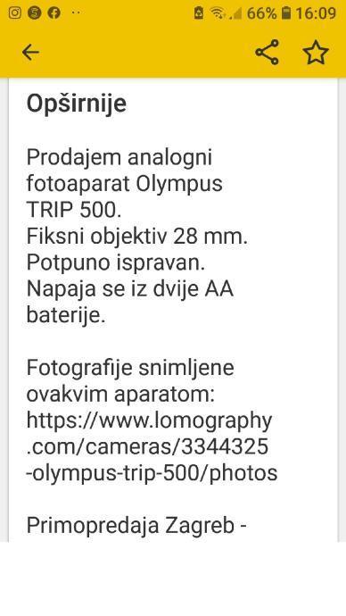 Prodajem jeftino fotoaparat OLYMPUS TRIP 500 ISPRAVAN..samo 14 EUR..
