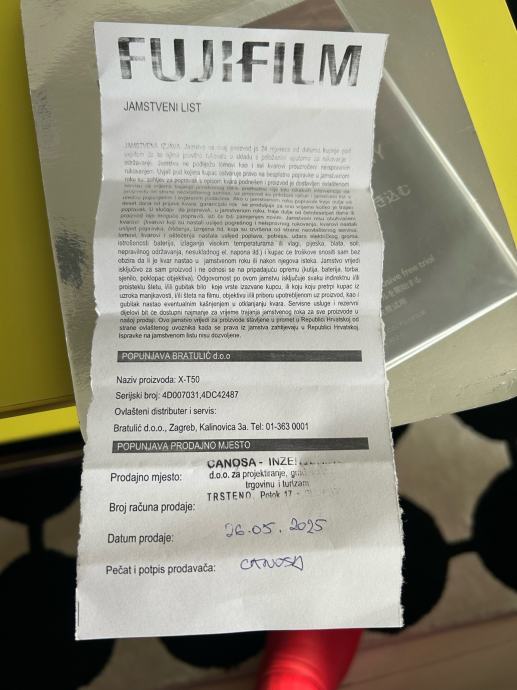 Prodajem Fujifilm X-T50 fotoaparat u Black Noir boji s objektivom XX15-45mmF3.5-5.6 OIS PZ. Kupljen 26.05.2025.