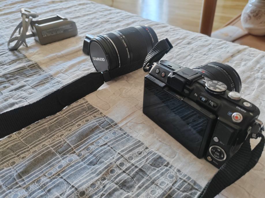 Prodajem 2 objektiva koja dolaze uz ovaj fotoaparat. Kit objektiv i zoom objektiv 40-150 mm. Uz objektive poklanjam i fotoaparat koji nije u potpunosti ispravan. Shutter mu radi samo na ekranu ali na dugmetu ne radi (može se popraviti) ali zato i je takva cijena. Uz to ide punjač i bljeskalica.