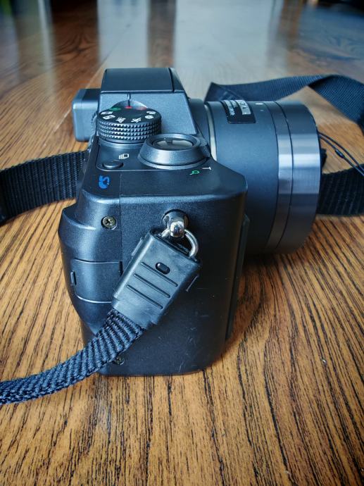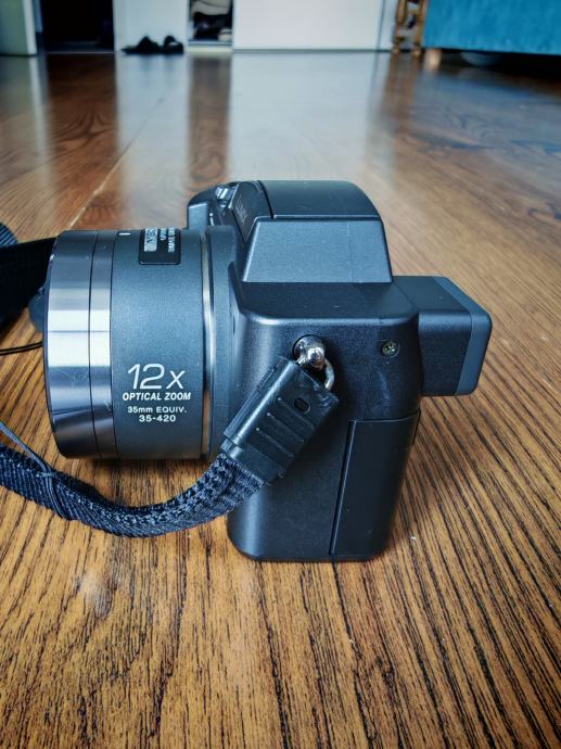 Fotoaparat dolazi sa USB kabelom, SD karticom 512 MB i remenom za nošenje.