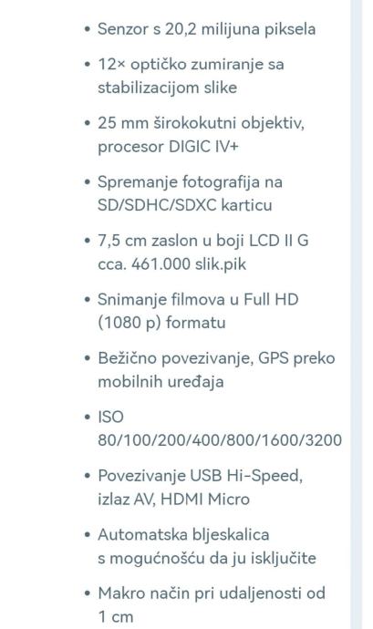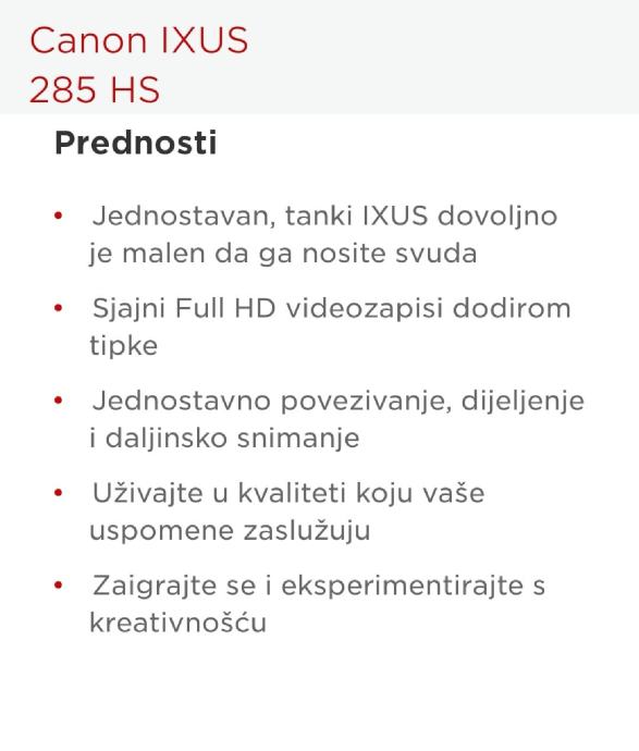 Prodajem digitalni fotoaparat Canon IXUS 285 HS.
