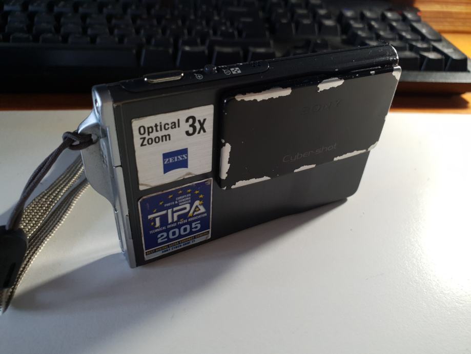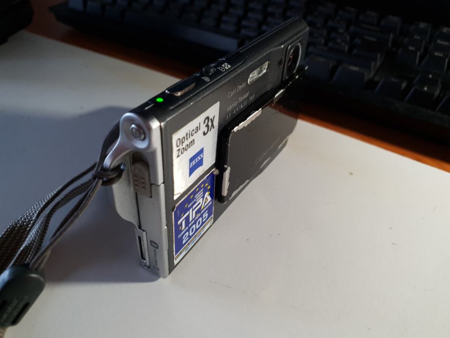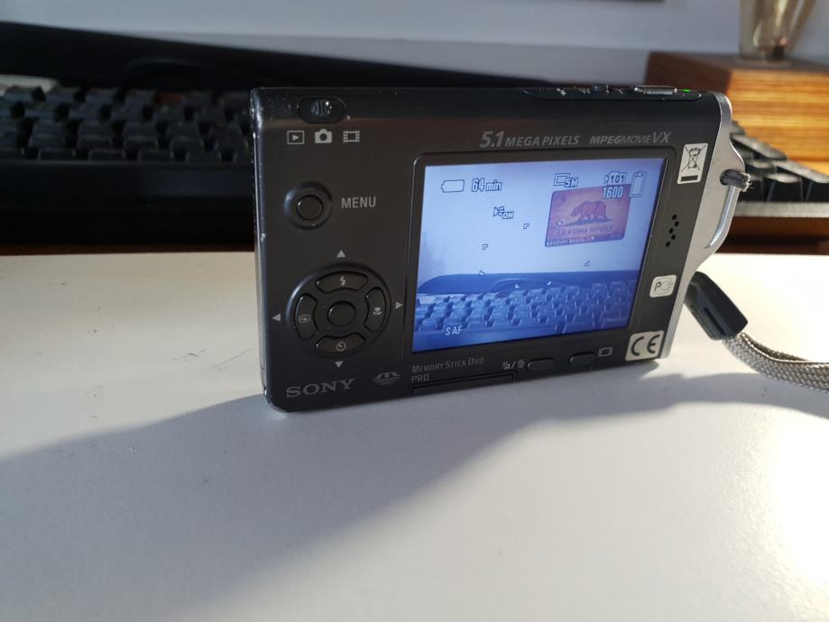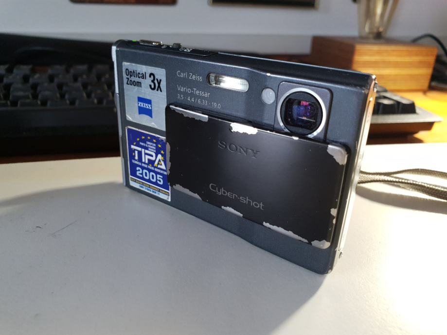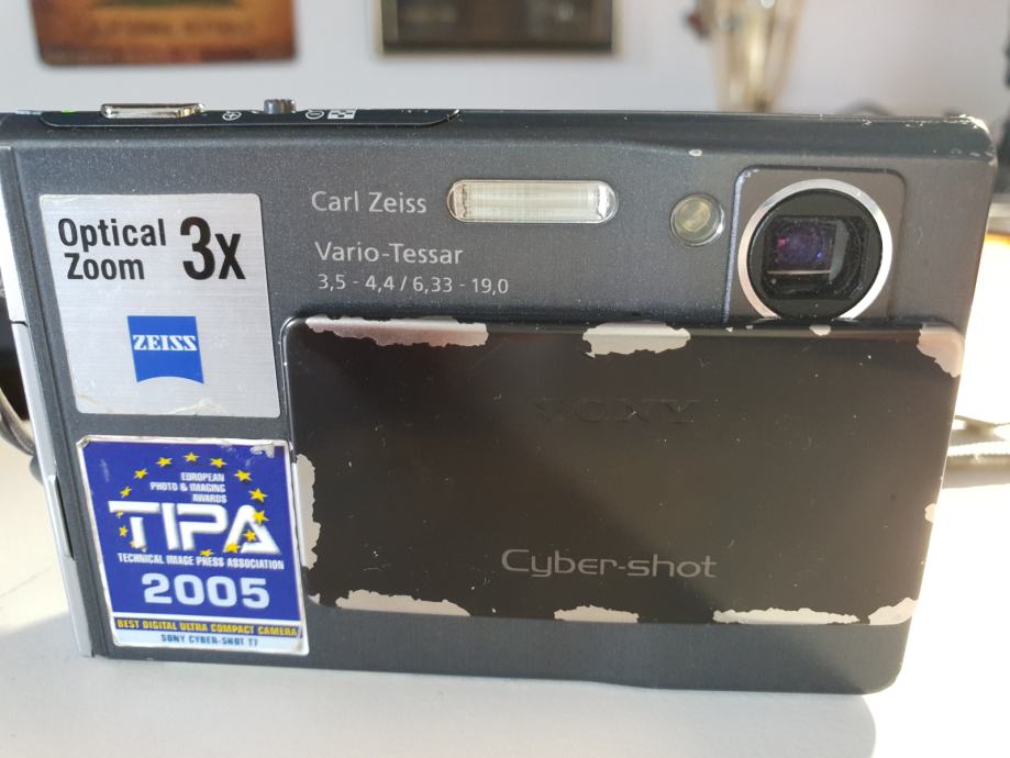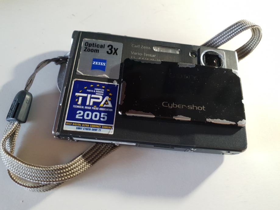 Sony Cyber-shot T7 iz 2005. Radi savršeno, osim što je kučište izgrebano kao što se vidi sa fotografija. Zbog kompaktnosti može eventualno poslužiti kao rezervna kamera.