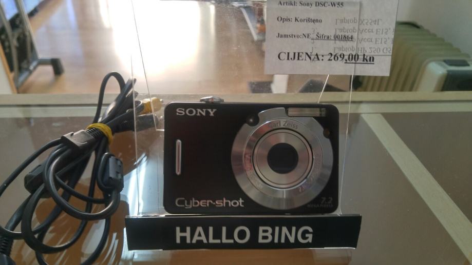 Sony DSC-W55 digitalni foto aparat sa punjivom baterijom, kablom za punjenje i kablom za povezivanje na tv. Malo koristeno. Uscuvano i ispravno.