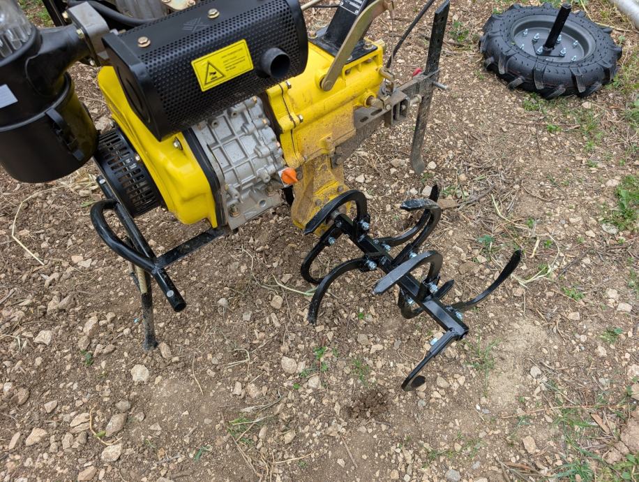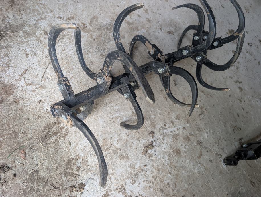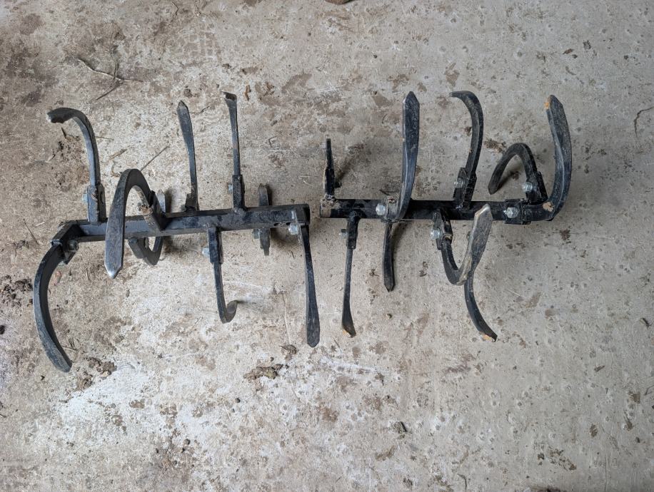 Prodajem set kopačica za dubinsko frezanje, namijenjen za montažu na motokultivator. Set se sastoji od više kopačica s čvrstim metalnim zubima zakrivljenog oblika koji omogućuju dublje prodiranje u zemlju i bržu obradu tla.