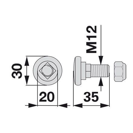 Vijak nosača noža sa maticom M12x35 mm, Kuhn, Taarup, Vicon/PZ...
