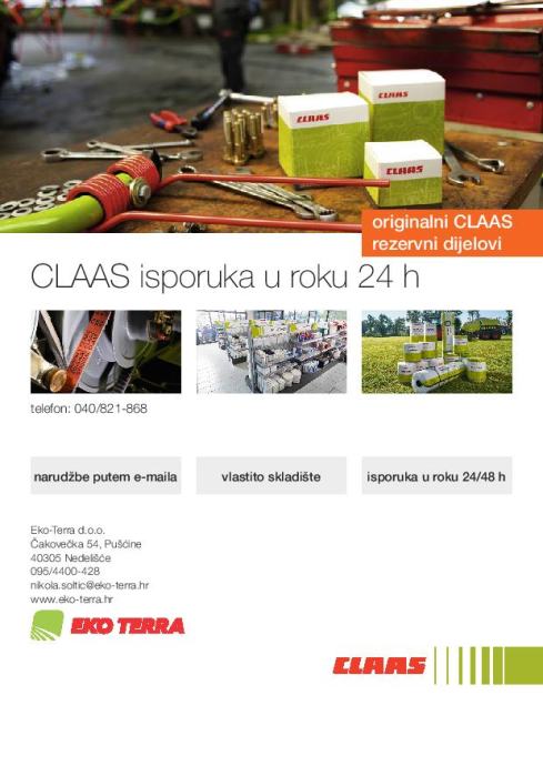 Dobavljivost dijelova u roku od 24 sata, ukoliko se nalaze na CLAAS skladištu u Beču.