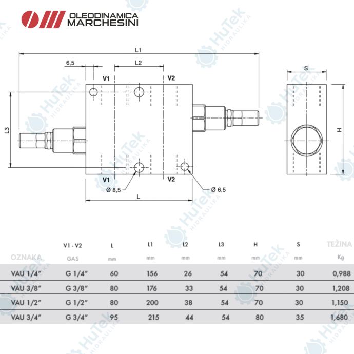 HIDRAULIČNI SIGURNOSNI VENTIL - DUPLI (PRELJEVNI "ŠOK" VENTIL)