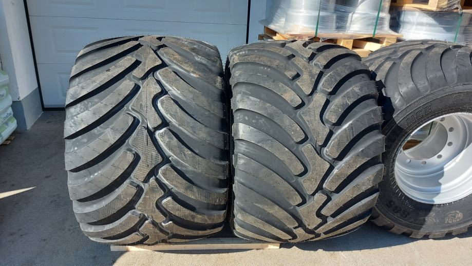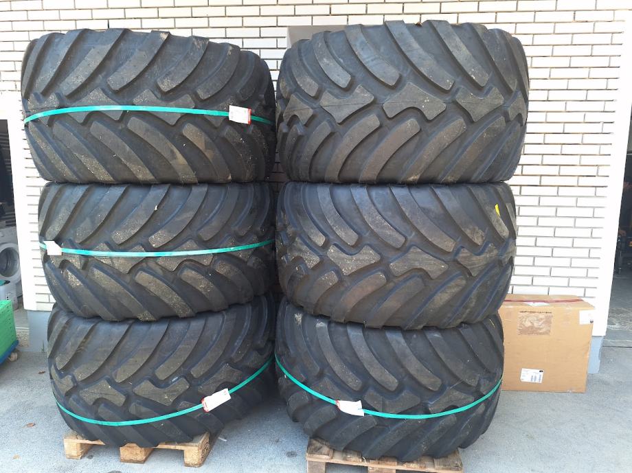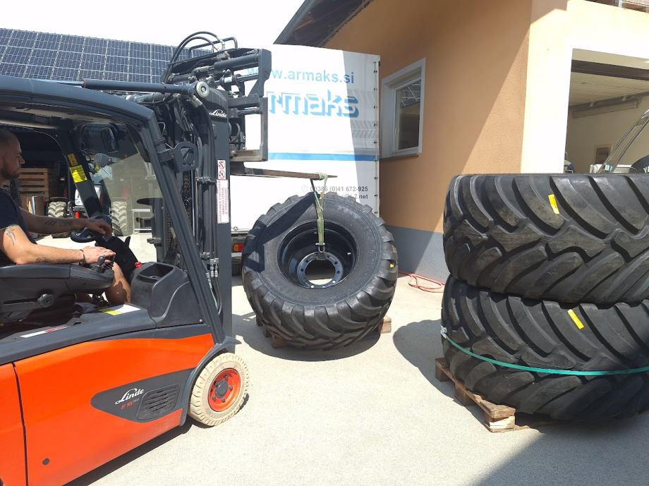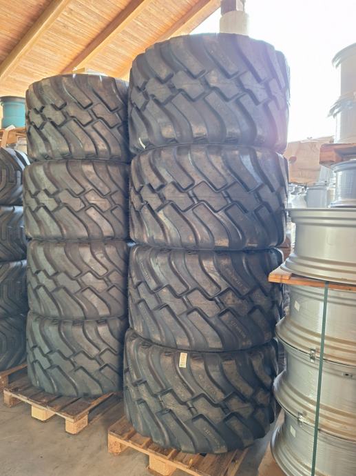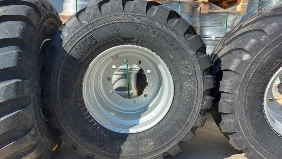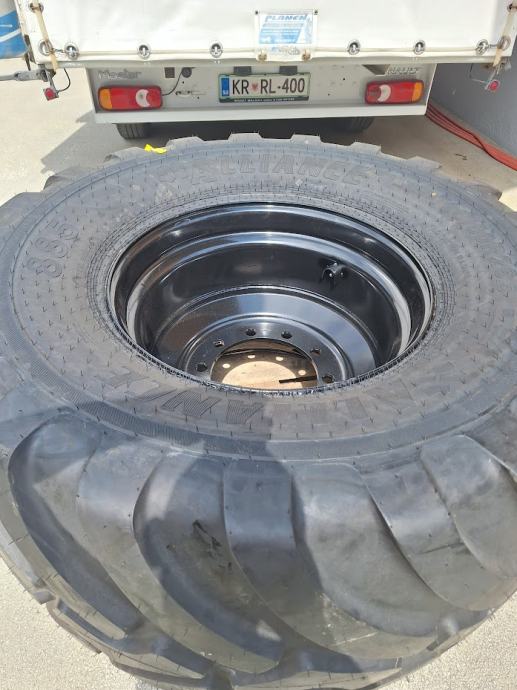 Na stanju radijalne pnevmatike 22.5 in26.5 cole dimenzije 710/50r26.5 , 650/55R26.5 , 600/55R26.5 , 600/50R22.5 , 560/60R22.5 , 560/45R22.5.Moguča dobava v kompletu sa felgu na 6, 8 ali 10 vijakov.