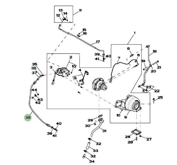 Original John Deere crijevo aktuatora turbine (RE522800) - namijenjeno za John Deere kombajne serije: 1570, 9580i WTS, 9540i WTS, 9560i WTS