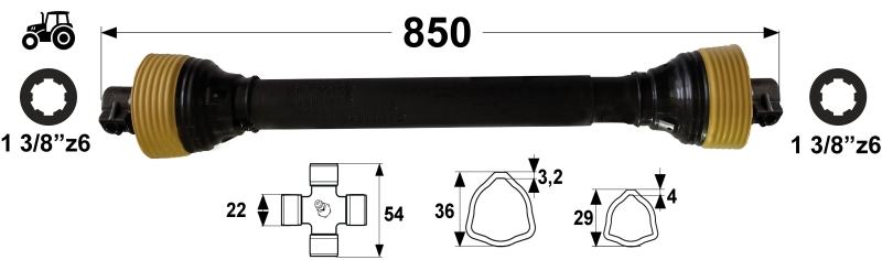 Kardan kat. 1, 850 mm za okretač 165 i 185, rastepač ili prskalicu