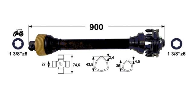 Kardan sa tarnom sklopkom kat. 3, 900 mm za roto branu i frezu do 2 m