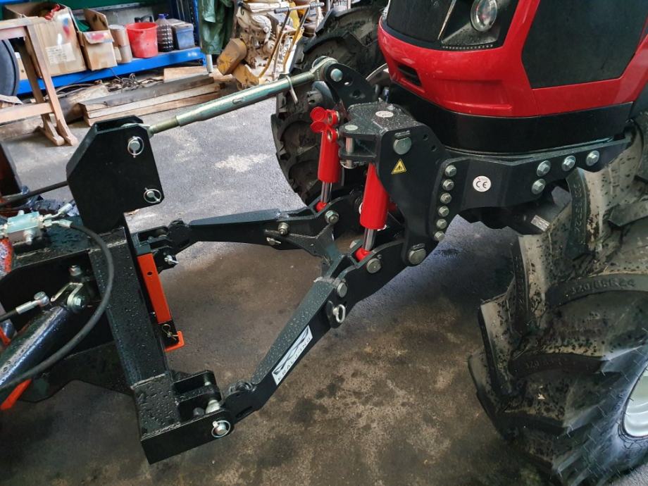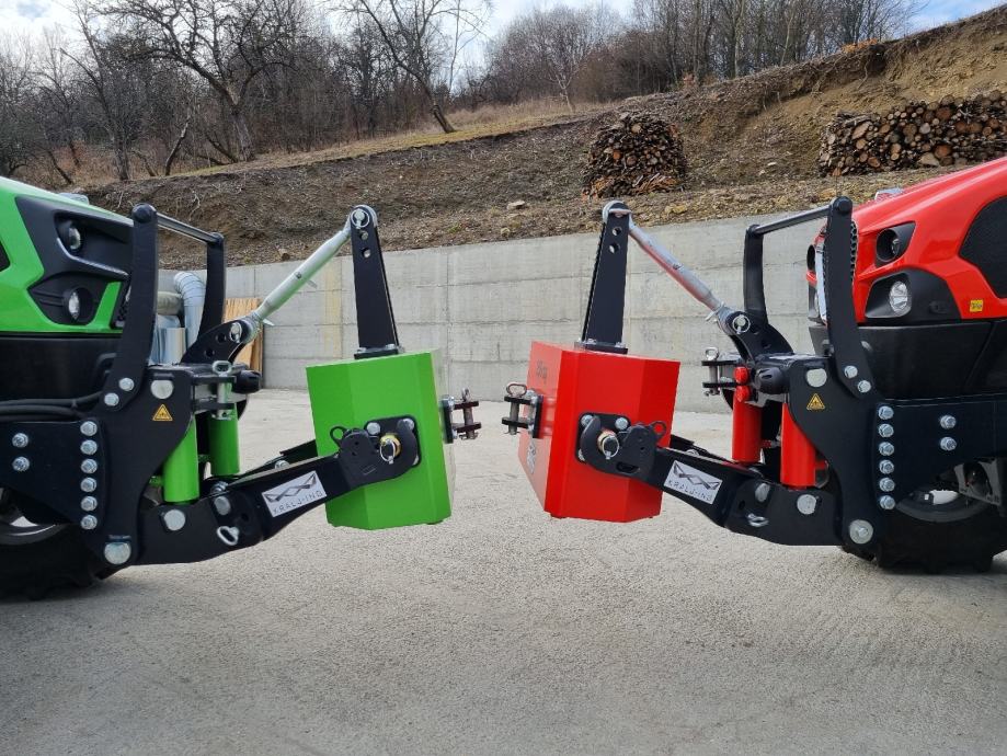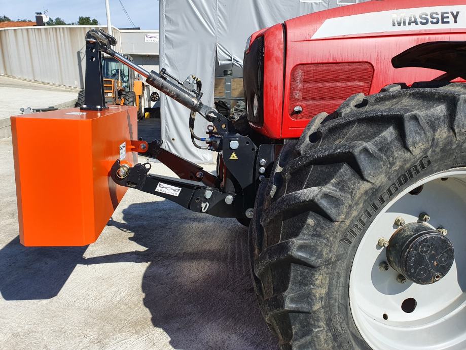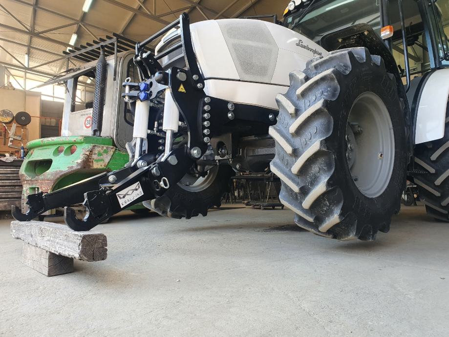 - uključuje izradu bočnih nosača po mjeri traktora na prednji dio traktora (ne do zvona). Nosači su masivni, rezani laserom i savijani na CNC preši, debljine 20 mm), te spajanje hidrauličnim crijevima na stražnje hidraulične izvode traktora na kojima su "T" razdjelnici sa ventilom kako bi mogli koristiti i stražnju i prednju stranu.