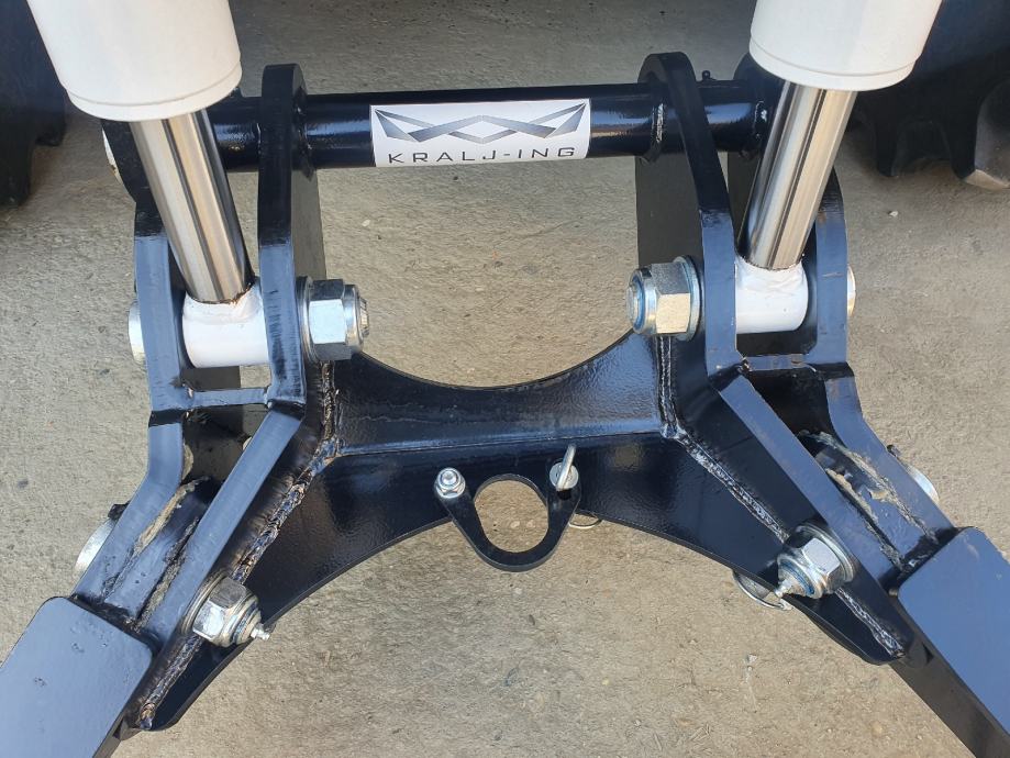 - uključuje izradu bočnih nosača po mjeri traktora - nosači do zvona (spoja) traktora. Nosači su masivni, rezani laserom i savijani na CNC preši, debljine 20 mm), te spajanje hidrauličnim crijevima na stražnje hidraulične izvode traktora.
