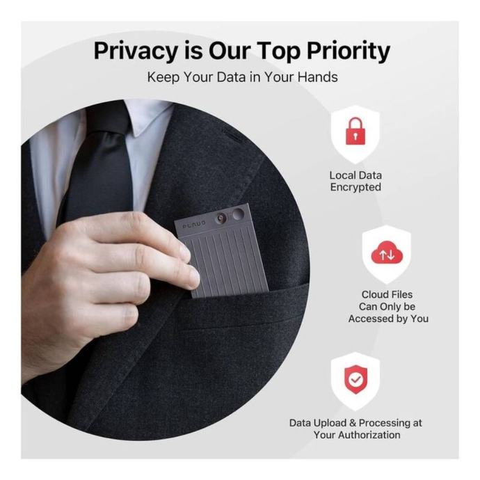Vaši podaci su sigurni s PLAUD NOTE. Uređaj pruža visok nivo zaštite privatnosti, čuvajući vaše snimke od neovlaštenog pristupa. Možete biti sigurni da su vaši podaci u sigurnim rukama.