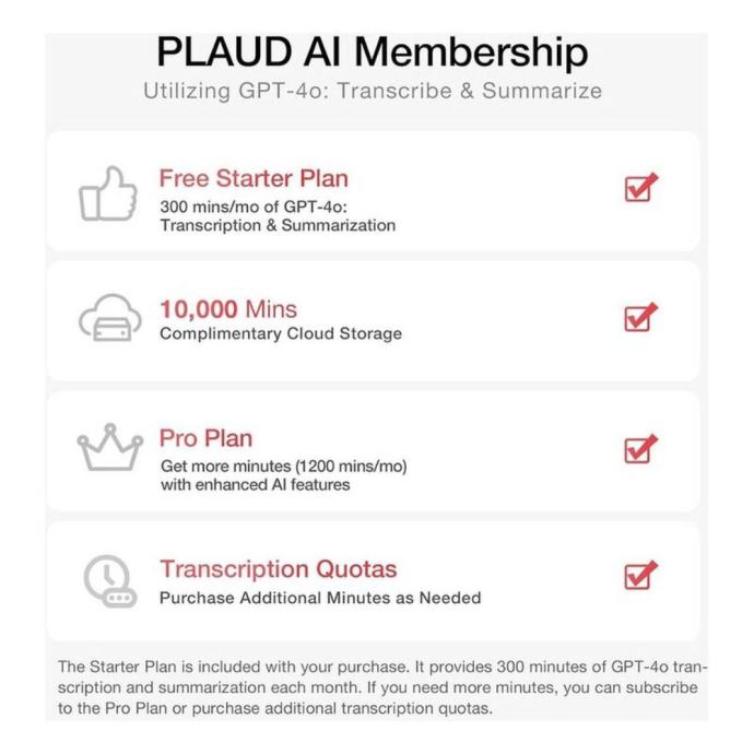Zahvaljujući integraciji s Google cloudom, PLAUD NOTE nudi pohranu za do 10.000 minuta snimanja, što znači da vaše snimke uvijek možete imati pri ruci, bilo gdje i bilo kada.