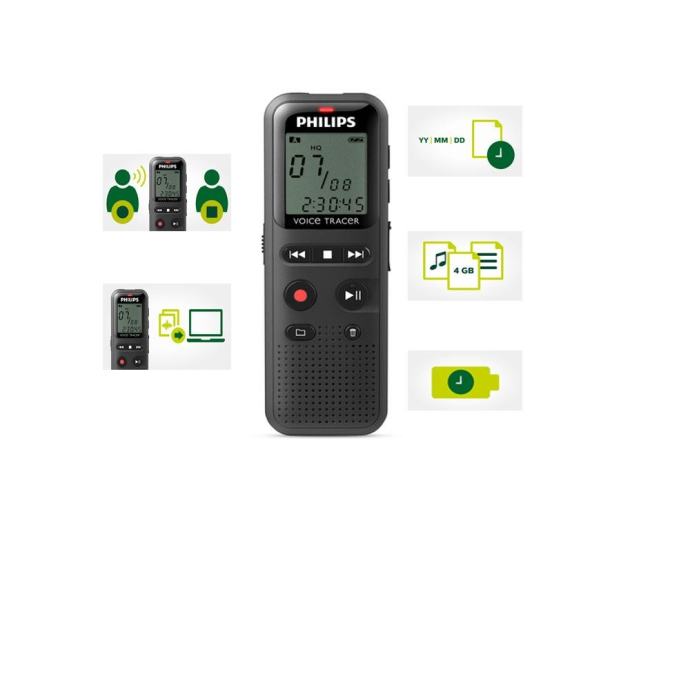 PHILIPS diktafon VoiceTracer DVT-1150 4GB USB PC Link