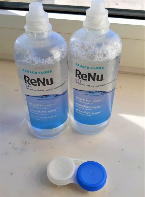 ReNu BAUSCH AND LOMB (Senitive eyes) višenamjenska tekućina za kontaktne leće. Otopina za leće koja čisti, dezificira, vlaži i čuva leće. Sadrži potpuno novu i jedinstvenu formulu zasnovanu za osjetljive oči. Potpuno novo, tvornički zapakirano, uz otopinu dolazi i kutijica za čuvanje kontaktnih leća. Volumen 240ml. Cijena za jedno pakiranje je 59 kuna, za dva pakiranja 100 kuna.
