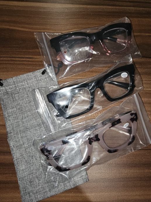 Prodajem potpuno nove dioptrijske naočale za čitanje u originalnom pakiranju. Dostupne su u tri različita modernog stila okvira - crnom, crnom debljem i prozirnom uzorkastom. Idealne su za svakodnevnu upotrebu i dolaze bez etikete za samo 5 eura po komadu.