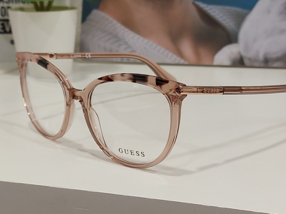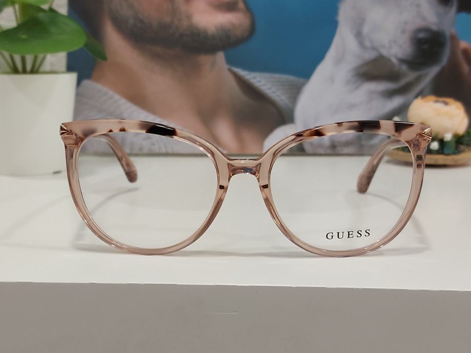 GUESS ŽENSKI PLASTIČNI ROZA PROZIRNI OKVIR ZA NAOČALE GU2881 057
