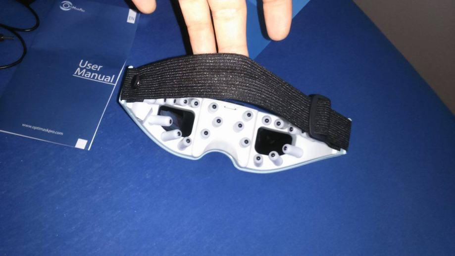 Masažer očiju OptiMaskPro kombinira magnetski i mehanički pritisak na važnim akupunkturnim točkama oko očiju.