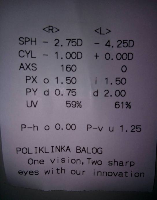 U slikama se nalaze podatci o trenutnoj dioptriji.