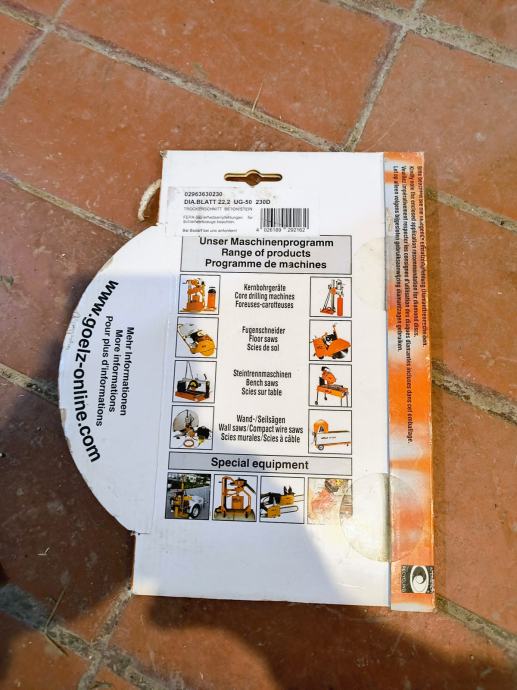 - Gölz Dia UG-50 230 D, premium rezna ploča za beton opće namjene, vanjskog promjera 230 mm, komada 1, cijena: 20,00 EUR