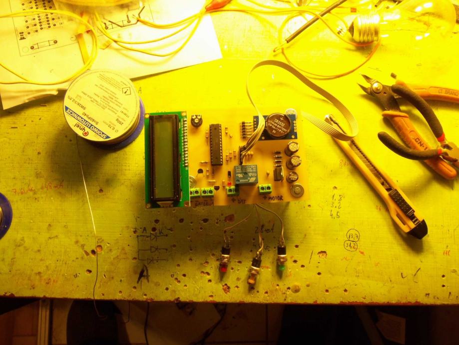 Digitalna elektronika za hranjenje divljači,ima svoju memoriju ,napaja se sa 12 voltnim akomulatorom,radi na principu tajmera,tri ukapčanja na dan a može samo i jedanput,štelanje od 0 sek do 60 sek,ima svoji sat koji je stalno aktivan iako nije spojen na akomulator (ima svoju posebnu baterijicu),relej je od 10A,sklop troši 17mA tako da je stalno spojen na bateriju,mehanički djelovi i motor se nedobiju uz elektroniku,