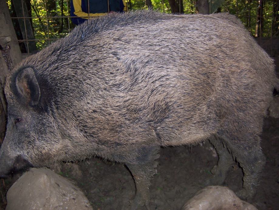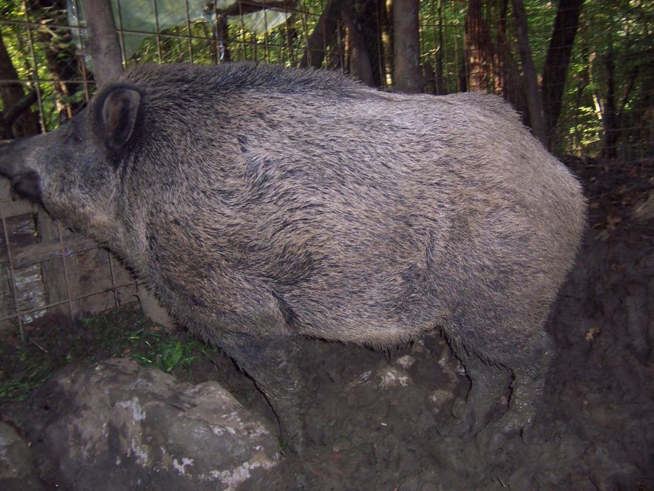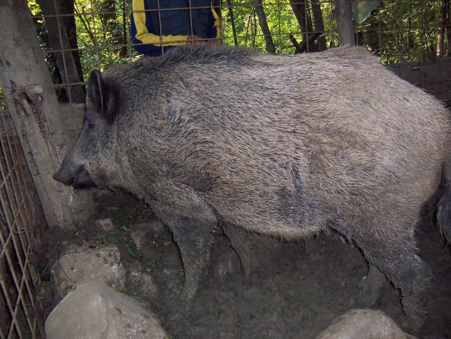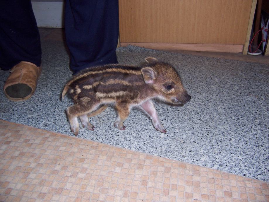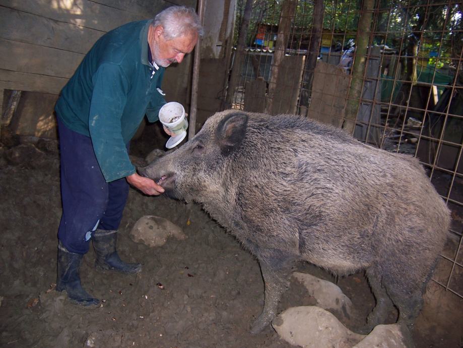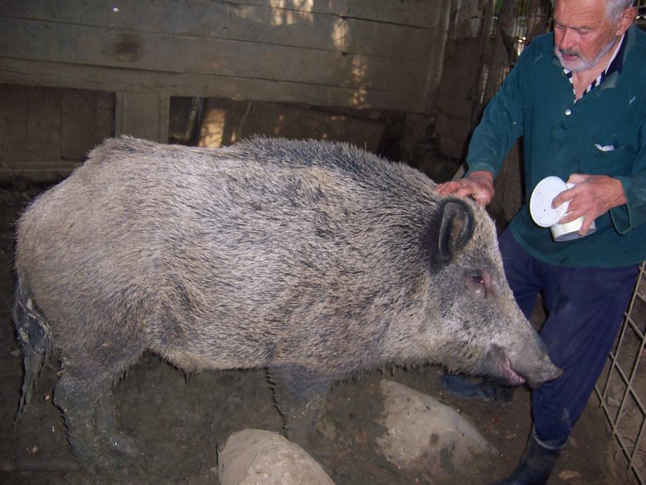Drugog travnja (IV. mjesec) 2018. bio je maleno pjegavo prasence. Nije imao ni kilogram. Danas je to, nakon 19 mjeseci, koliko ih je nakupio do sada velika divlja svinja - vepar, težine između 150 i 200 kg. Muški spolni organi (jaja) veličine su dvije muške šake. Pravi mudonja! Mnogi su me plašili da će biti opća opasnost. Međutim, on je i dalje moja veeeelika beba. Sretan je kad sam kod njega u gateru. Jede iz ruke, njuška me i jedva čeka da ga počnem češkati. Tada se izvali, baš kao prasac! Gleda me kroz velike trepavice, žmirka i tiho se glasa po svinjski. Često, kad imam neke radove u gateru, postane mu dosadno pa sam, samoinicijativno legne u svoju duboku jamu i spavucka.