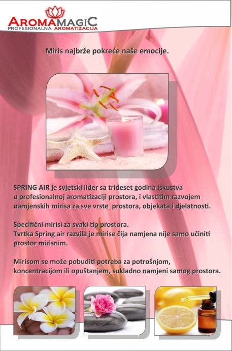 SpringAir, kao vodeći Europski proizvodjač profesionalne aromatizacije prostora sa preko 30 godina isksutva. Najbolji profesionalni mirisi sa svim potrebnim EU certifikatima.