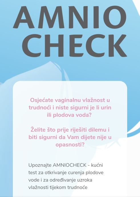Tijekom trudnoće može doći do neželjenog i nekontroliranog otjecanja mokraće, osobito nakon 36. tjedna zbog pritiska sve veće maternice na mjehur. Vrlo često trudnica primjećuje vodenasti iscjedak, ali najčešće ne zna da li je to plodna voda, urin ili pojačani vaginalni iscjedak. U ovom slučaju Amniocheck pomaže pri jednostavnom otkrivanju curenja plodove vode.