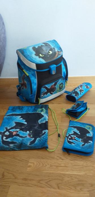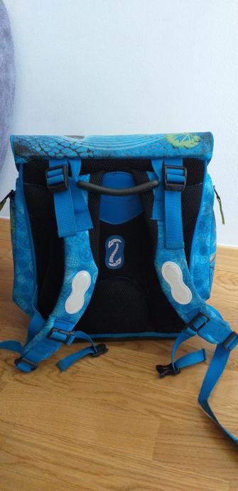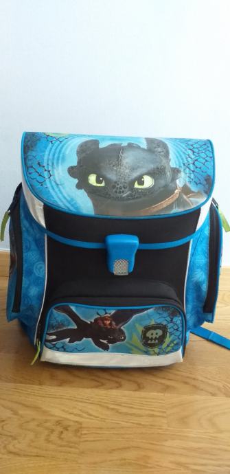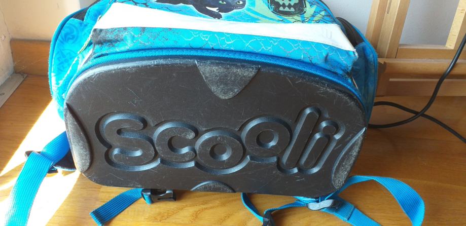 Izuzetno kvalitetna Scooli školska torba u izvrsnom stanju. Scooli torbe su poznate po kvaliteti, izdržljive su i imaju dobra anatomska "leđa" pa torba izgleda kao nova... Prazna torba je teška oko 1 kg. Kopča na torbi je na magnet tako da ju je lako otvarati i zatvarati. Na torbi su izvrsne mačje oči te se odlično uočava u mraku (čak malo zasvijetle i zmajeve oči). Uz torbu dolaze još i dvije pernice (nisu korištene), vrećica za papuče/TZK te novčanik. Tragovi korištenja se jedino vide na dnu jer je plastika pa se vide tragovi stajanja na podu...