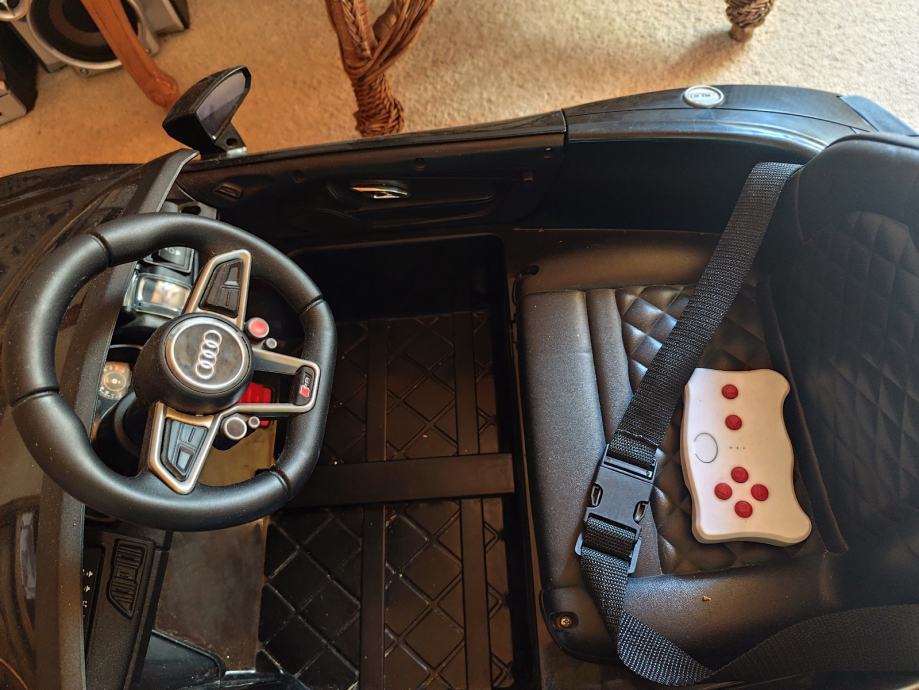 Prodajem dječji električni autić Audi Sport u crnoj boji. Radi se o modelu na akumulator s jednim sjedalom, opremljenim sigurnosnim pojasom. Autić ima upravljač s Audi logom te dolazi s daljinskim upravljačem koji roditelju omogućuje upravljanje vozilom izvana. Sjedalo je presvučeno u crnu tapecirani materijal s prošivenim uzorkom.