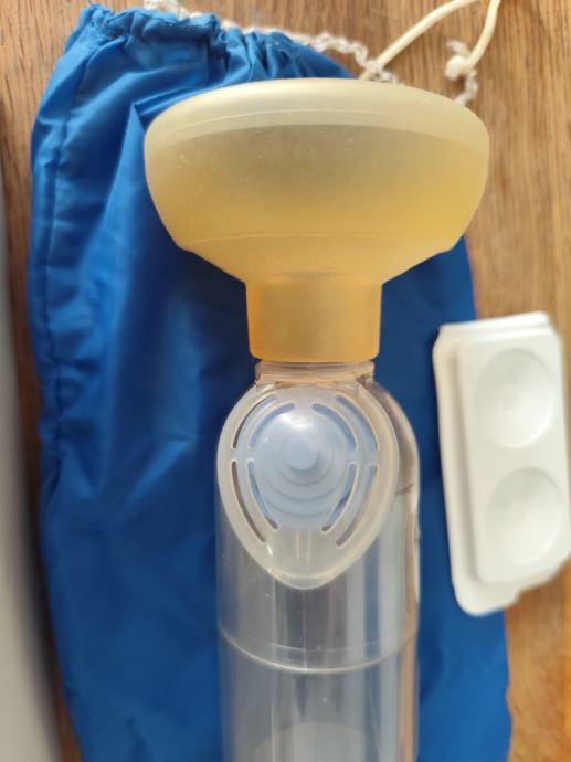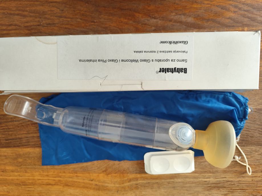 Inhalator za bebe i malu djecu. Kompatibilan s Ventolin, Flixotide i dr. pumpicama. Idealno za dužu terapiju kod male djece koja ne mogu udahnuti izravno iz pumpice. Dva rezervna filtera.