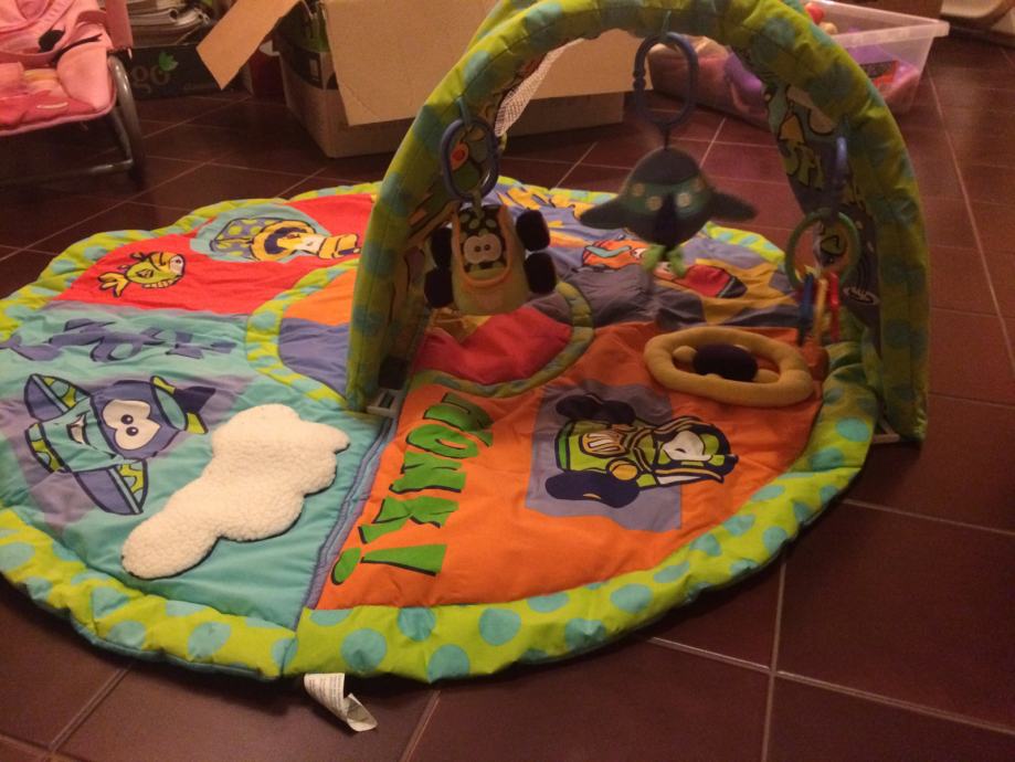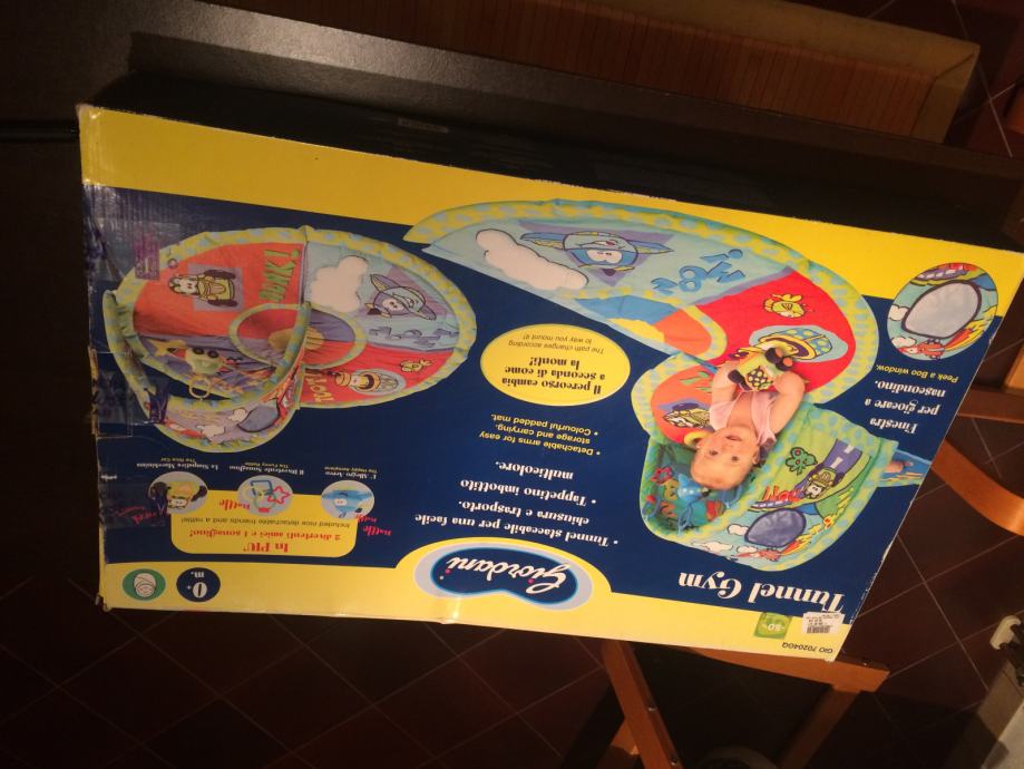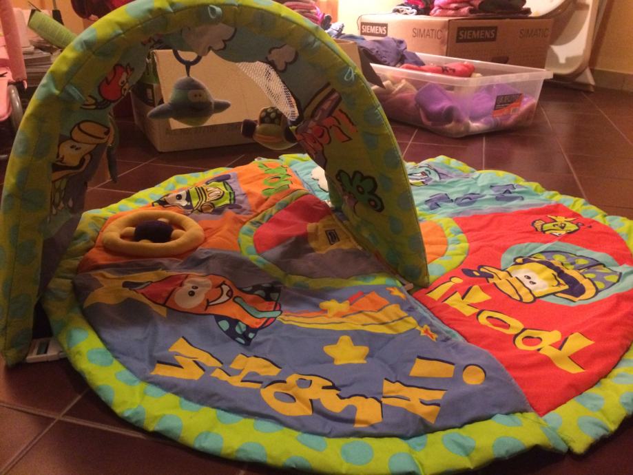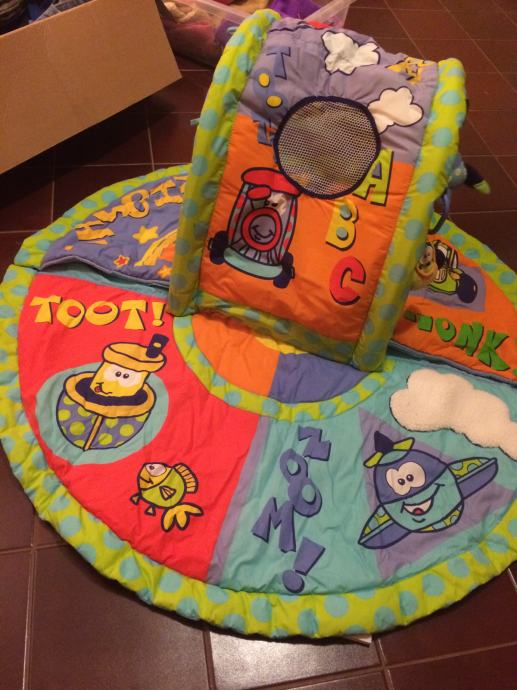 Prodajem vrlo očuvan baby gym u obliku tunela sa visećim igračkama i šuškavom podlogom.Na podlozi postoje različiti materijali i oblici te zvukovi koji potiču djetetov razvoj.Moze se koristiti na podu ili krevetu. Također se može koristiti sa ili bez tunela kao i samo pola kruga (ako nema dovoljno mjesta).A igračke se mogu objesiti i na kolica ili krevetić.Svi dijelovi mogu se prati u perilicu.Kupljen u Sloveniji i placen 50€.