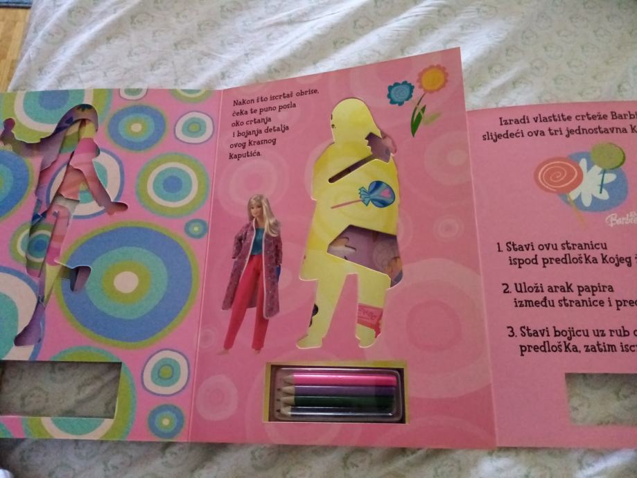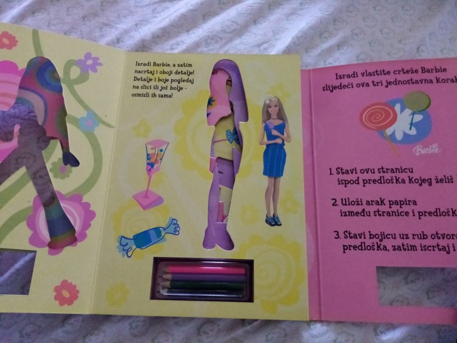 Barbi knjiga s predloscima za crtanje i bojicama, novo, nekoristeno