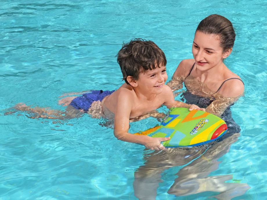 Daska dimenzija 42x32x3,5cm ima ergonomski oblik. Izrađena je od izdržljive pjene s izvrsnom plovnosti. Osim toga, prekrivena je tkaninom sa šarenim dizajnom kako bi se osiguralo udobno držanje i spriječilo da vam isklizne iz ruku. Prikladno za djecu od 3 do 6 godina.