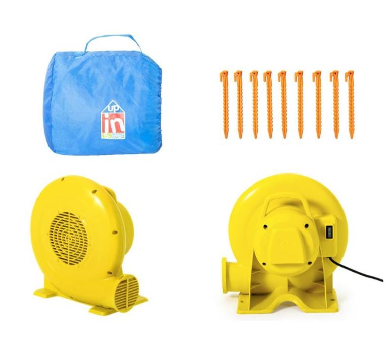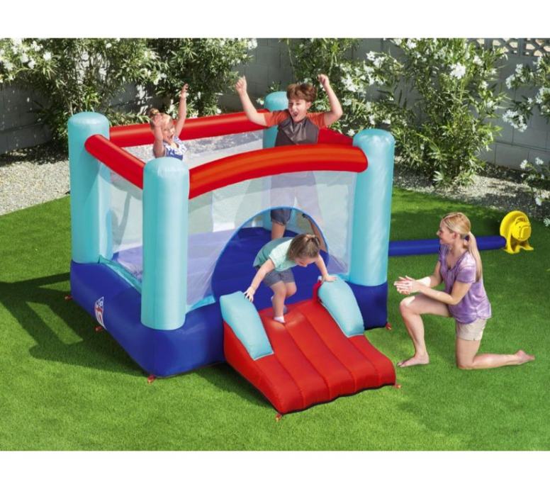 Vrtni trampolin na napuhavanje s toboganom za najmlađe omogućit će djeci da rade ono što im se najviše sviđa, tj. skaču i zabavljaju se na svježem zraku. Šareni trampolin na napuhavanje dimenzija 250 x 210 x 152 cm, osiguran bočnim zidnim mrežicama, izrađen od trajnog poliester materijala presvučenog PVC-om. Stranice izrađene od mreže pružit će izvrsnu zaštitu, štoviše, roditelji će moći vidjeti kako djeca provode vrijeme u njemu.