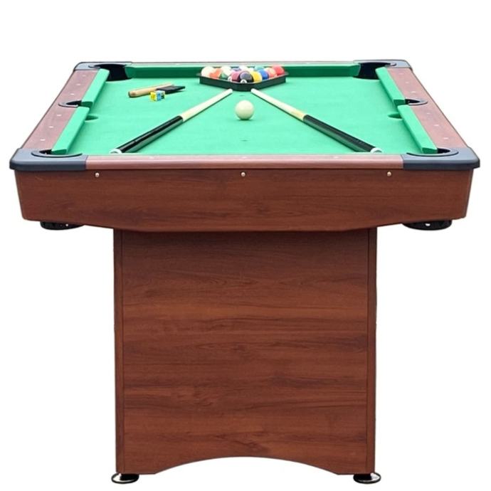 Ugrađeni metalni niveliri osiguravaju da se bilijarski stol uvijek može lako izravnati. S površinom za igru od MDF-a od 15 mm, ovaj stol nudi izvrsnu mogućnost igranja, dok zelena tkanina pruža glatku površinu za igru. Tkanina je prednategnuta što omogućuje brzo i jednostavno sastavljanje.