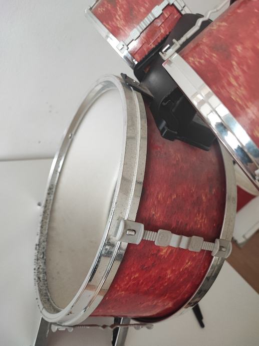 Bubnjevi u dobrom stanju, imaju tragove stajanja u garaži, odlično sviraju, ništa potrgano, mali tragova korištenja.