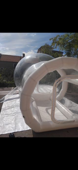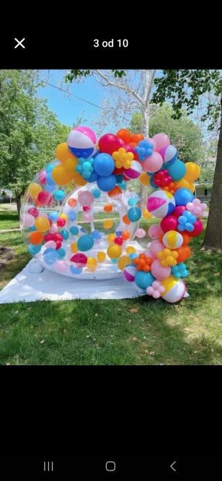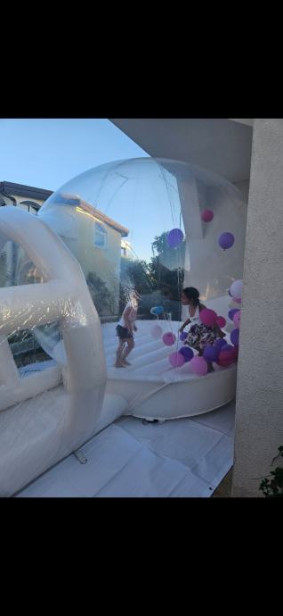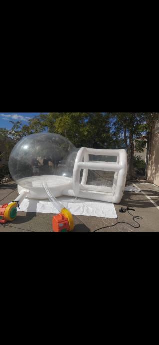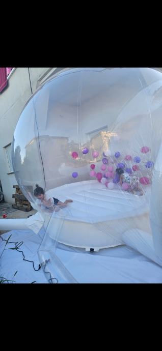 Prodajem bubble za najam, iznajmljen 3 puta,nije onaj klasični ima zadebljan pod za skakanje, nova 2 puhača, posjedujem račun. Kupljen prošle godine, ima certifikat! Prodajem ispod cijene!