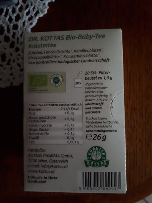 Caj za bebe protiv grceva vec od 1 tjedna starosti. Takoder i dodatak prehrani. 1 filter samo izvaden. Ostali jos 19 filtera! Bio proizvod najbolje Austrijske kvalitete. Vrijedi do 3.mj.2020.godine...jeftino