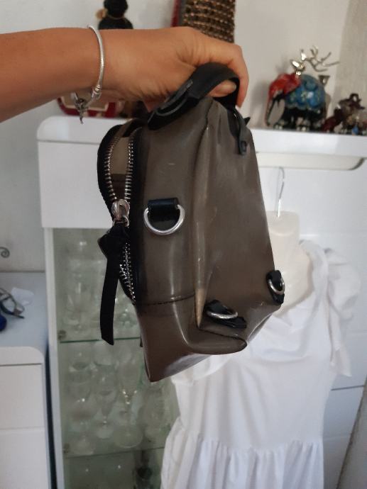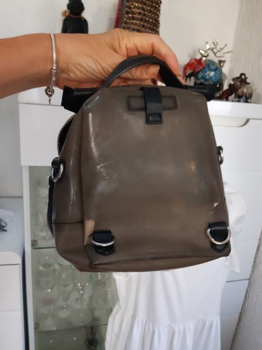 Mali crni plasticni gumirani ruksak za djevojcice, dimenzije: 21 cm x 20 cm.