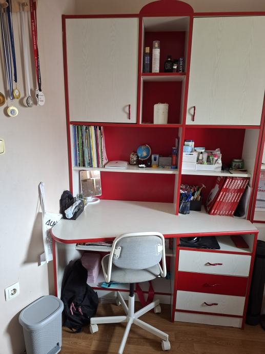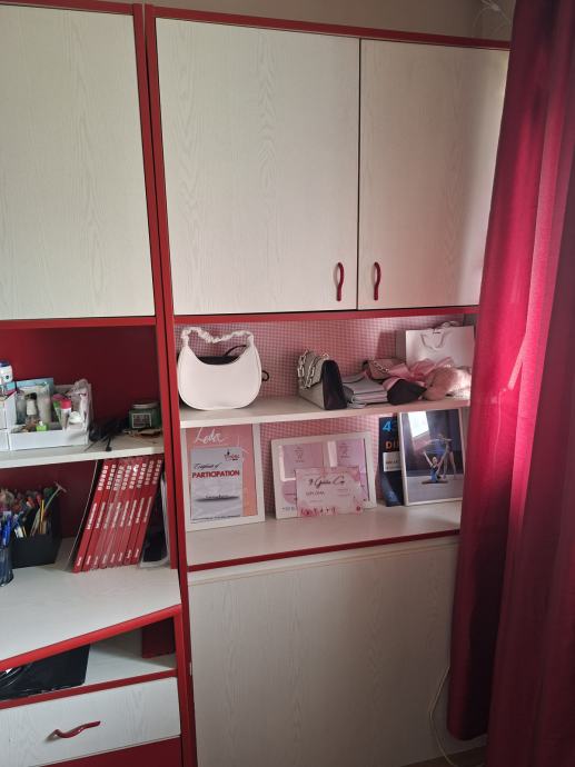 Dječja soba bijela u kombinaciji sa crvenom bojom. Drvo. U vrlo dobrom stanju.