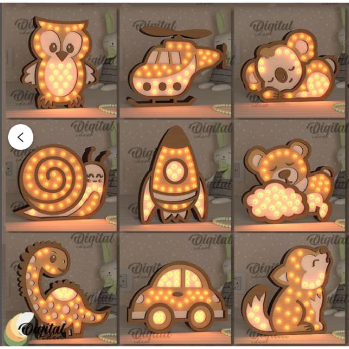 Ove dječje noćne lampe su savršena kombinacija topline, kreativnosti i funkcionalnosti. Izrađene su od drveta i sadrže LED svjetla koja pružaju nježnu i ugodnu rasvjetu, idealnu za dječje sobe. Svaka lampa ima jedinstven oblik, inspiriran omiljenim dječjim motivima: