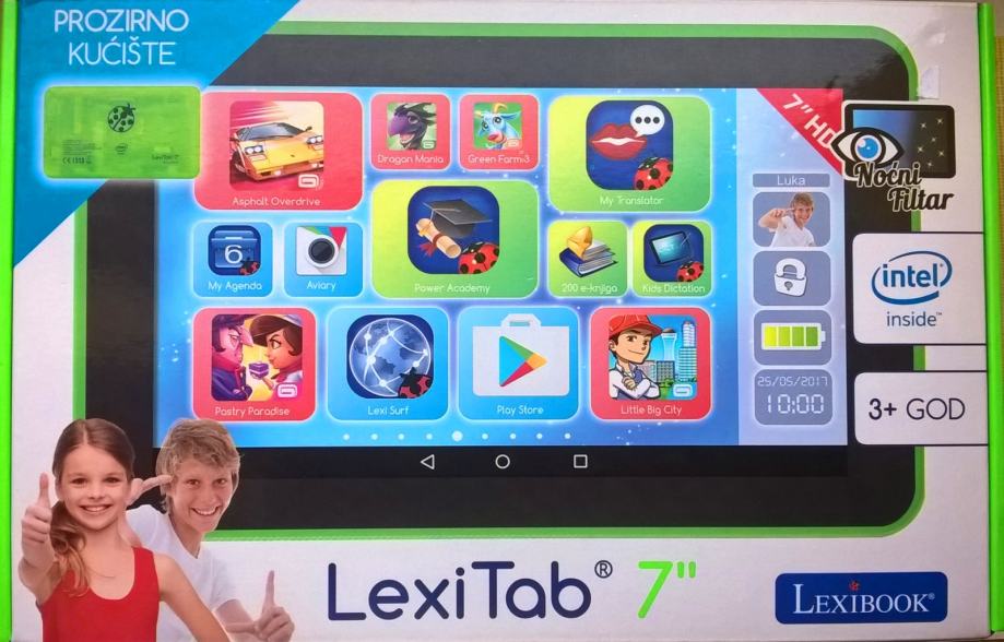 Uz pomoć LexiTab omogućite Vašoj djeci da se igraju pametnije. Zašto? Jednostavno novi dječji tablet ima roditeljski nadzor nad kompletnim sadržajem, što znači da ćete isključivo Vi upravljati sadržajima na koje dijee može pristupiti. Sučelje je posebno napravljeno za djecu i jednostavno za uporabu. Internet je siguran uz Lexibook aplikaciju, sve aplikacije su poučne a također ima uključenih 200-e knjiga, igre, uređivanje foto sadržaja, Google Play, noćni filtar i još mnogo toga...
