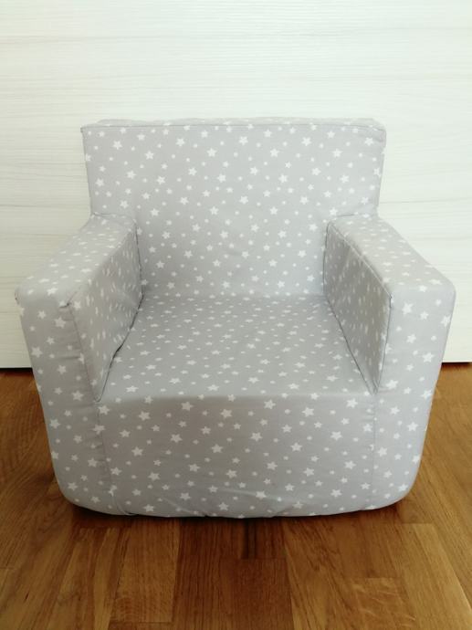 Foteljica je napravljena od čvrste spužve, navlaka je 100% pamuk, punilo 100% poliestersko vlakno. Proizvedeno u Hrvatskoj.