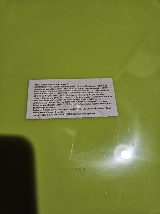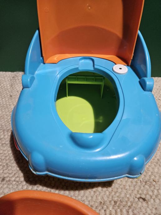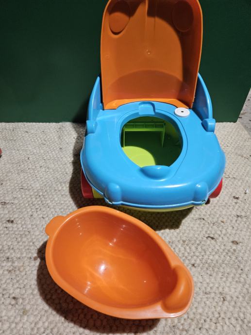 Prodajem dječju kahlicu. Korištena par puta. Ima gumb za sviranje i nešto se malo čuje ali ne svira, vjerojatno treba zamijeniti bateriju. Unutra se može staviti wc papir koji se odiza vadi kroz prorez. Može se koristiti i kao nastavak za wc prema slici s kutije. Originalna kutija, pakiranje. Mogućnost osobnog preuzimanja i dostava za Zagreb prema dogovoru.