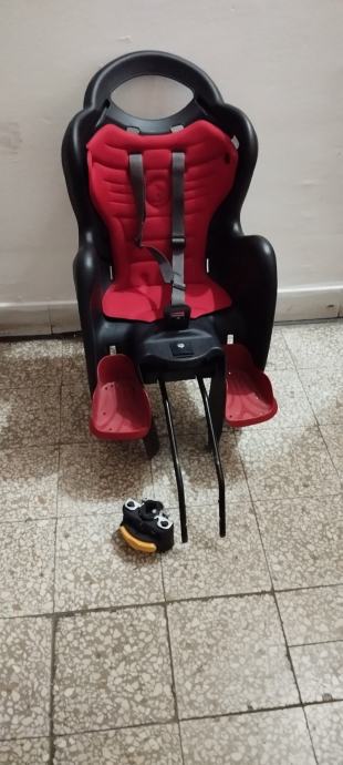 Prodajem dječju sjedalicu za bicikl sa nosačem za bicikl, sjedalica ima podesivi nagib sjedenja