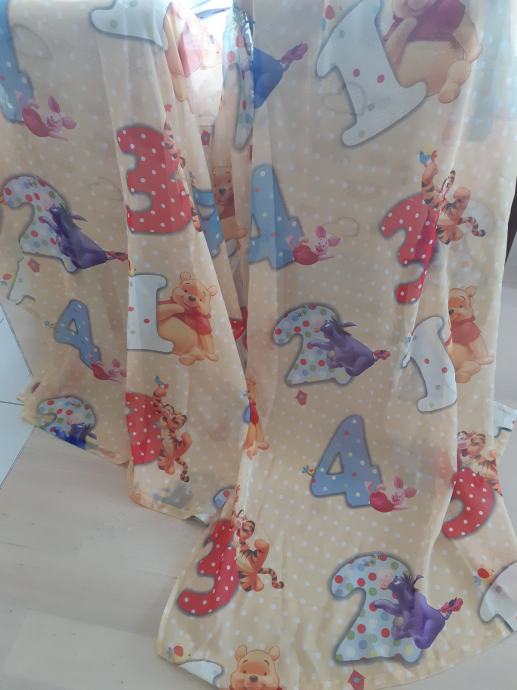 Prodajem zavjesu za dječju sobu Winnie Pooh. Sama zavjesa je 72cm široka i 160cm duga. I tako dvije. Moze na prozor od 110-130cm širine i 130-160cm dužine. Dvije su polovice pa se lakše moze otvoriti prozor. Boja je lijepa žuta, slabo se raspoznaje na slici. Zavjesa je sašivena, ringove ću si skinuti vjerujem da imate svoje.